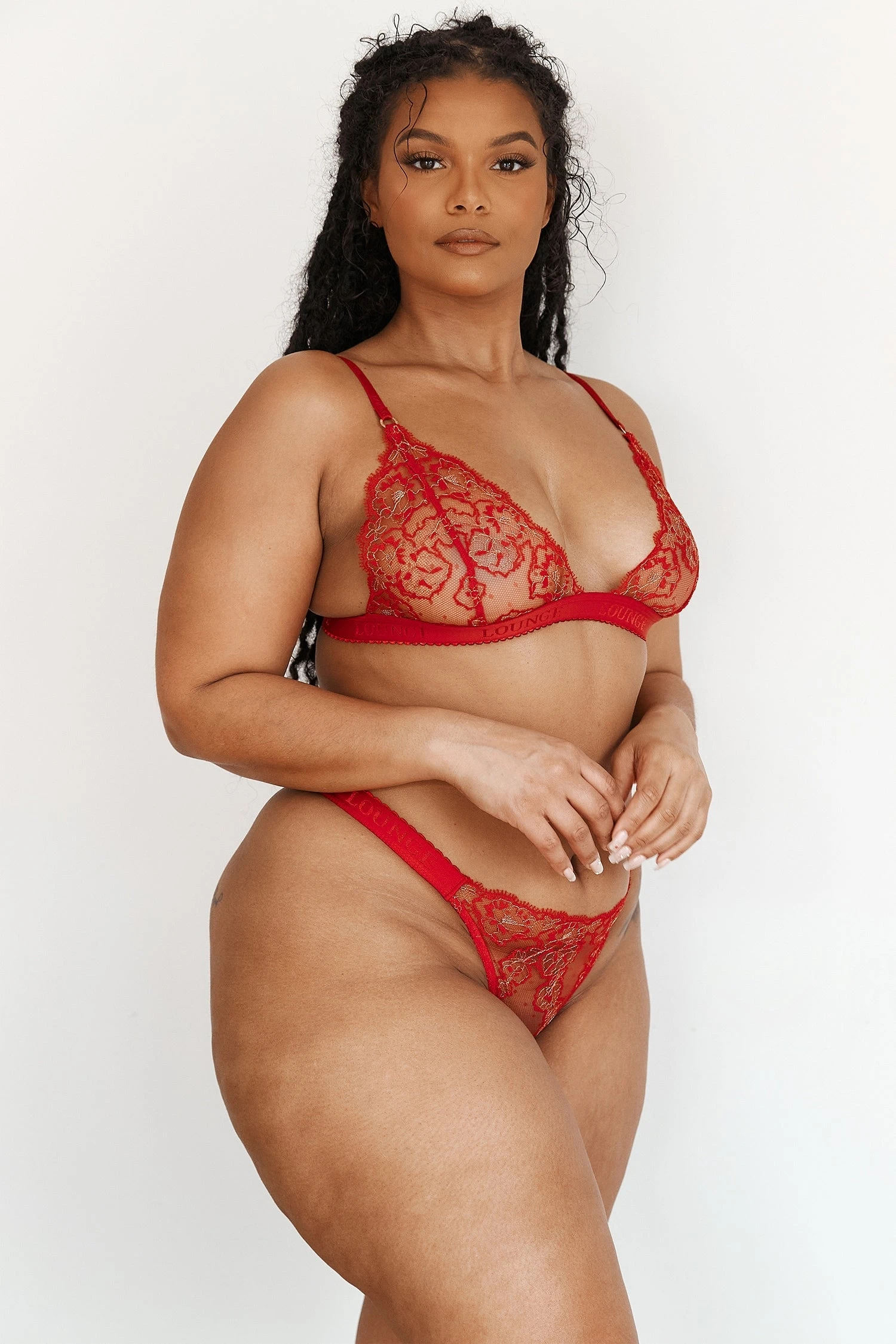 Our Embroidered Triangle Set is designed to be seen, with a unique floral lace and glossy branded banners. Capture all the elegance in this must-have Lounge style.