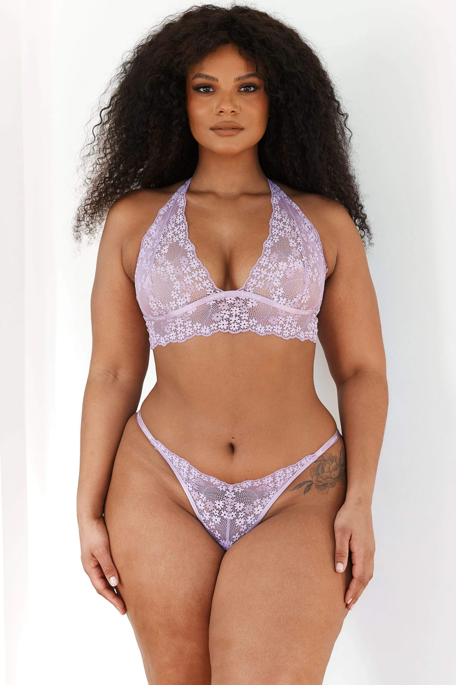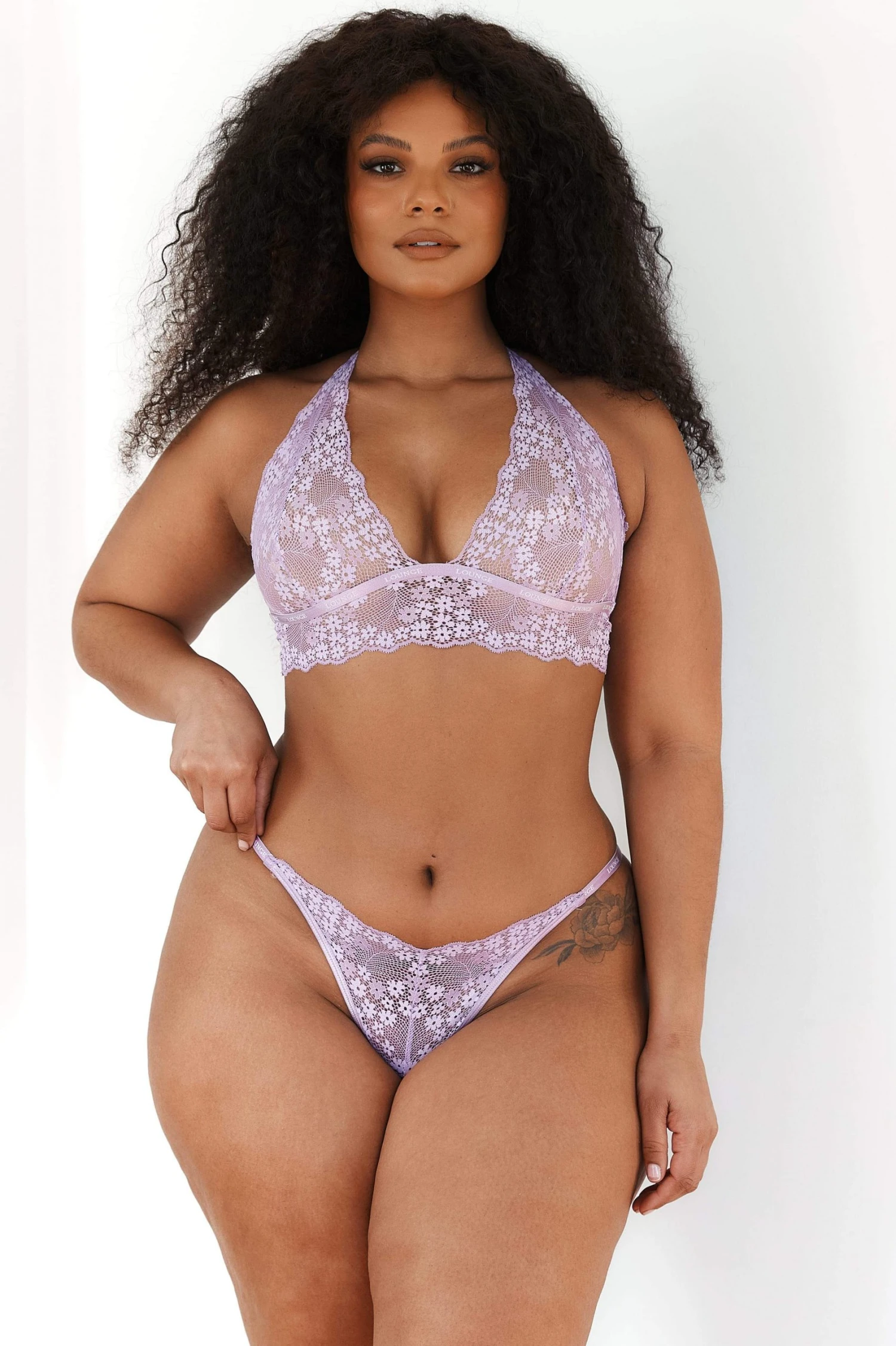 Feel beautifully bright in our Lace Triangle Set. Tonal Lounge branded binding comes together with a soft stretch floral lace to bring you the ultimate show-stopping piece.