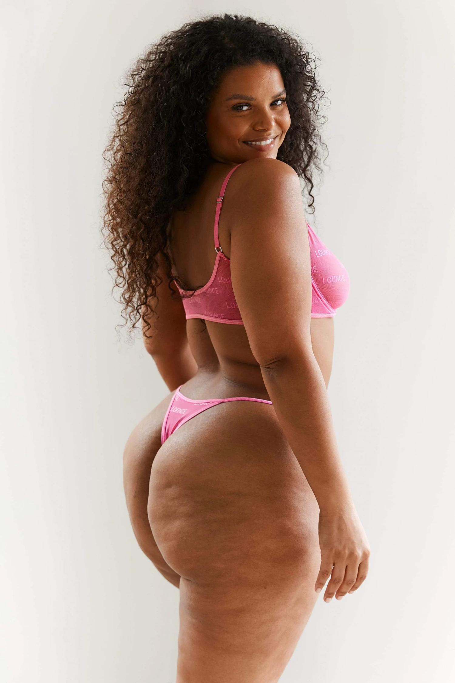 - Sheer mesh with repeat Lounge logo application