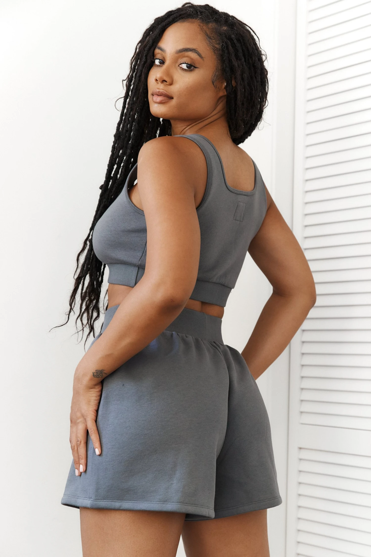 - Low-cut crop top and shorts set