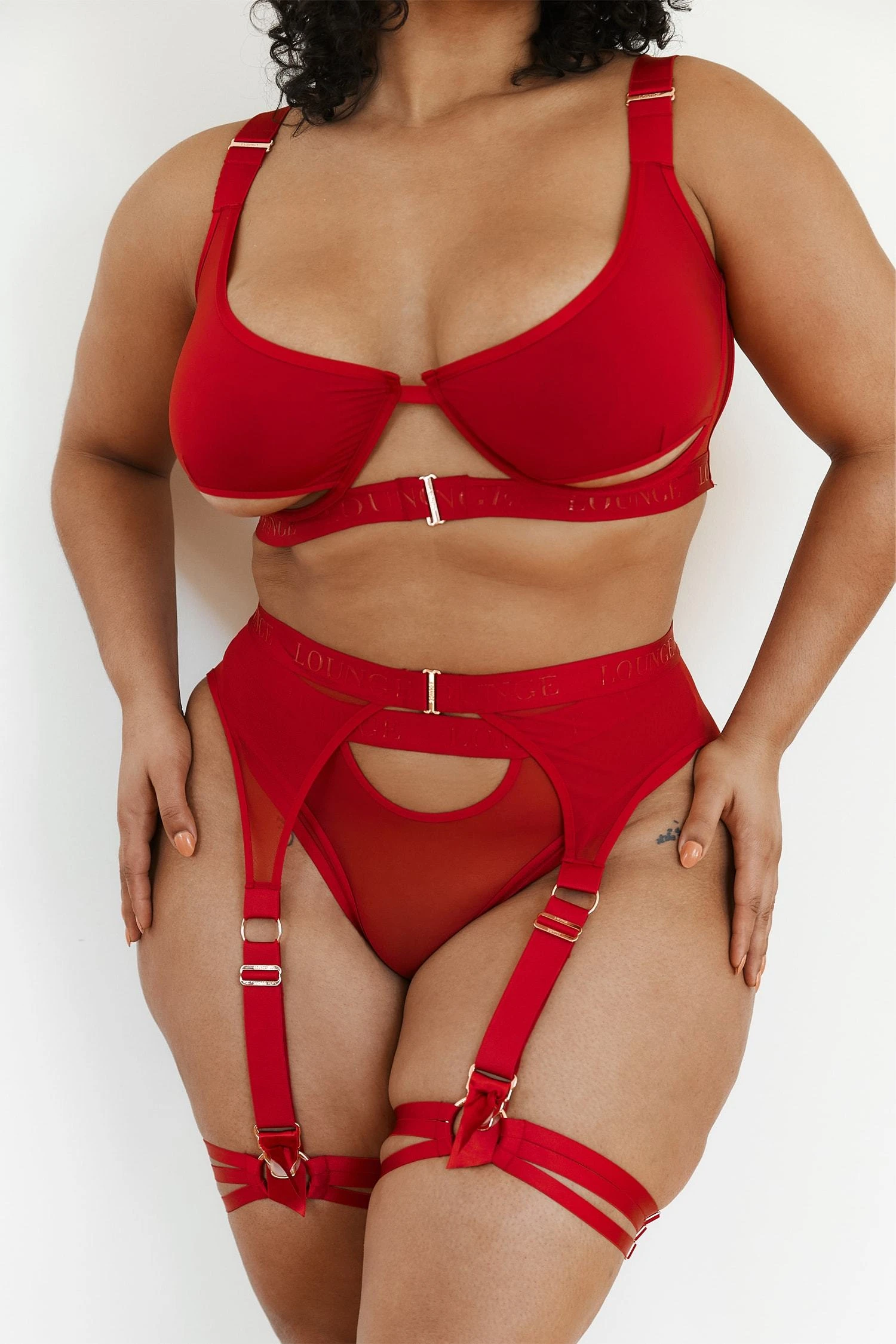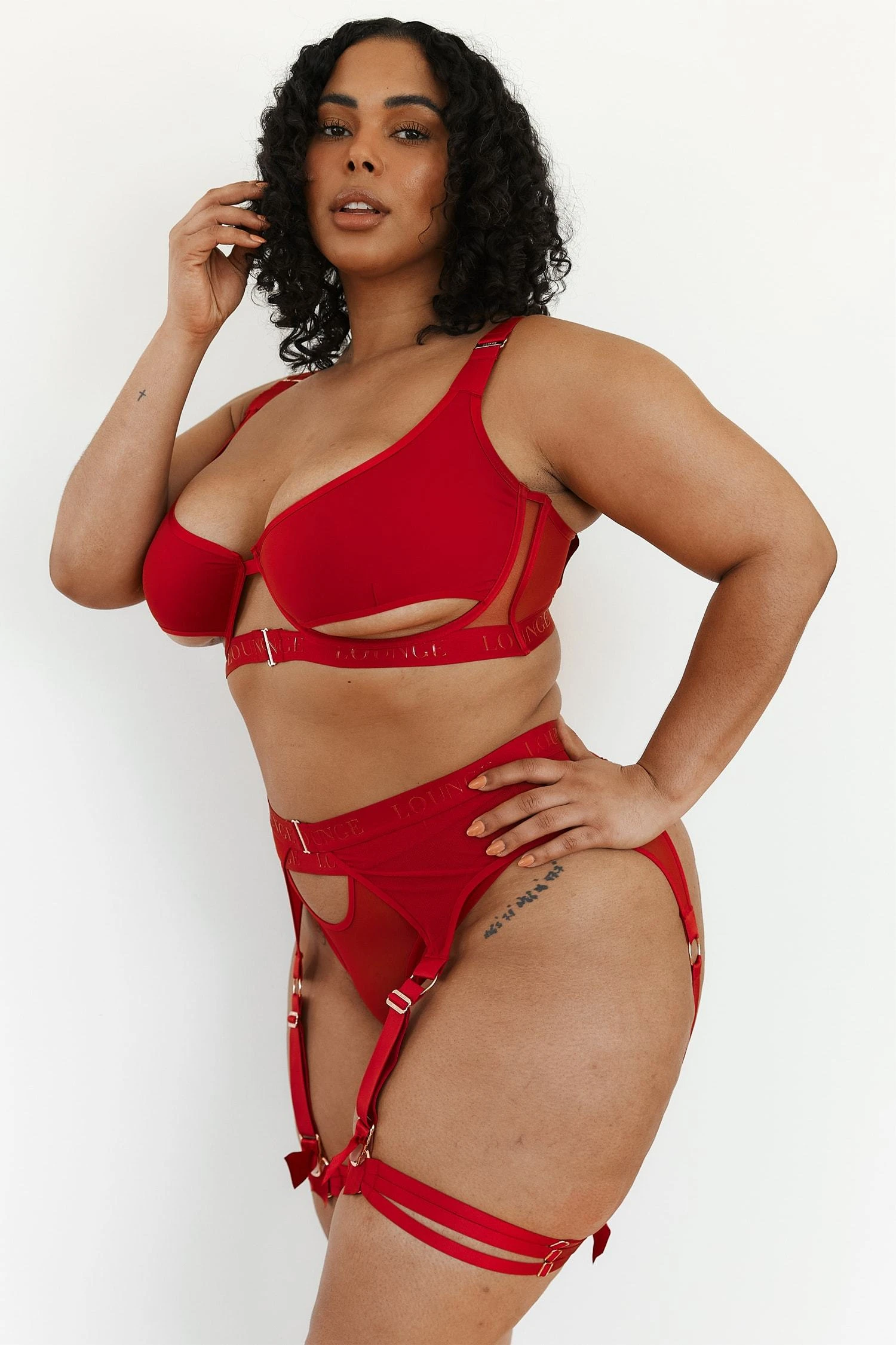 Lure in our Red Luna Intimates Set. This maroon set features beautiful soft fabrications with sexy cut out details across the bra cups and thong for those daring to bare a little more.