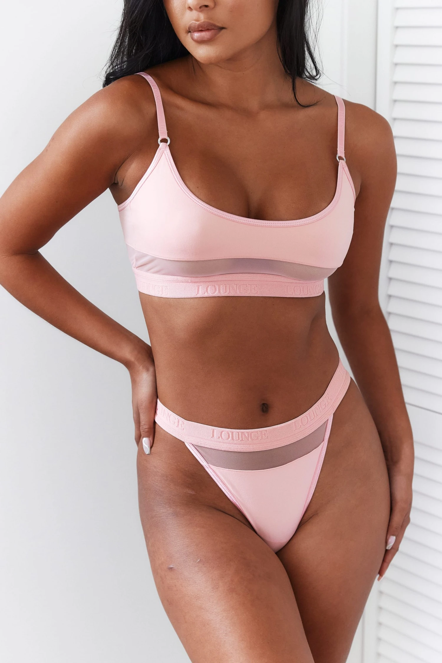 Designed with a soft stretch fit, our Mesh Collection is the perfect set to wear for unlimited comfort with a simple, sport-luxe style. This is the only mesh lingerie set you need.