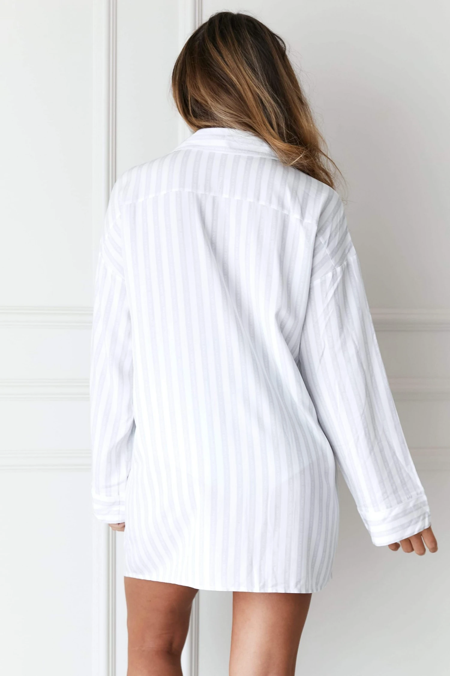 - Oversized pinstripe pyjama shirt with matching briefs